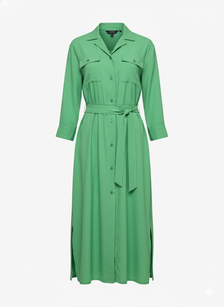💚 پیراهن ماکسی مدل سافاری/شومیزی با کمربند - سبز چمنی